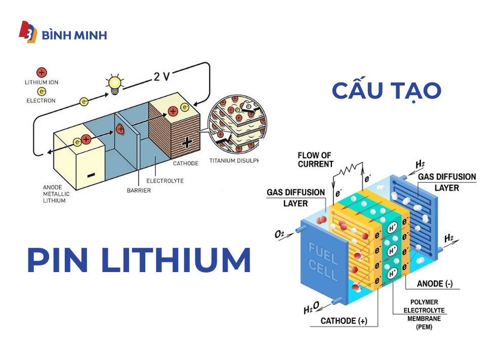 Pin lithium sử dụng các ion lithium di chuyển giữa cực dương và cực âm để lưu trữ và giải phóng năng lượng. Khác với pin axit-chì, loại pin này không sử dụng dung dịch acid hay bản cực chì, giúp giảm thiểu rủi ro rò rỉ và các vấn đề liên quan đến ăn mòn kim loại.